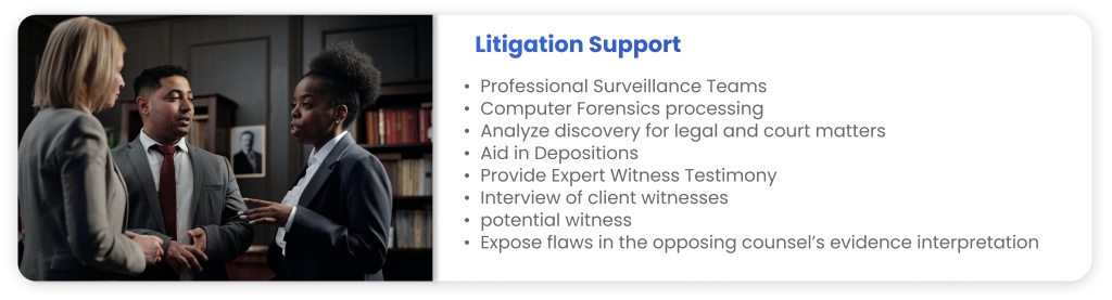 Since 2004, we’ve been a full service Private Investigation Firm, and we’re ready to serve you in any investigation you need help with. Over the years, we’ve built up a solid reputation based on integrity, quality, and experience. Each of our investigators is experienced and dedicated, and together we make up a Learn more